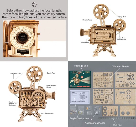 Retro Kamera Holz Puzzle Diy 3d Hand Kurbel Film Projektor Etsy Schweiz